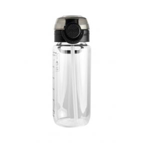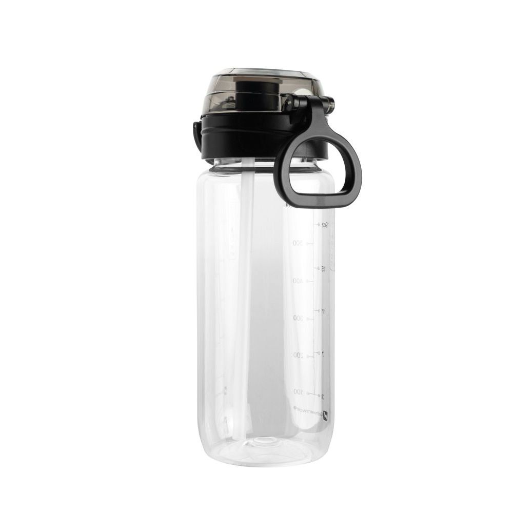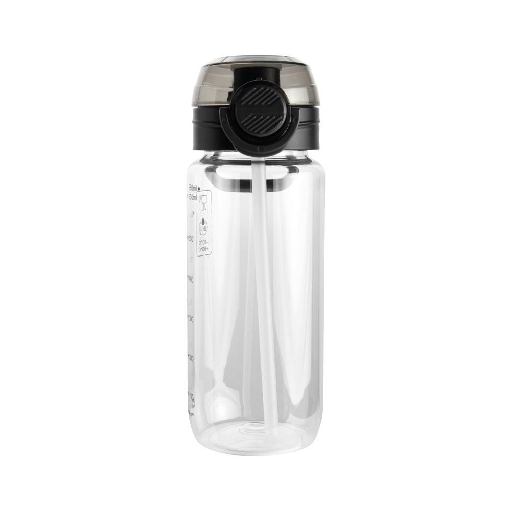Schwarzwolf sports tritan bottle in a transparent color with a black lid and loop for hanging. The bottle has a volume of 650 ml and supports a healthy life style because it doesn´t contain BPA. It offers two drinking options: free flow or with a straw. It´s suitable for cold and warm drinks from -10°C to 80°C. Packed in a gift box. Volume: 650 ml. Material: tritan. Dimensions: O 7.3 × 21.5 cm.