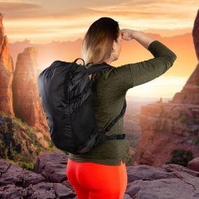 Practical Schwarzwolf backpack which is suitable for hiking as well as city use. The backpack has a main compartment with a zipper and an inner pocket, 2 side mesh pockets, a small zipper pocket in the upper back and a waist belt. There are two pull straps with a buckles on both sides of the backpack. It has a padded back system and shoulder straps. Volume: 19 l. Weight: 515 g. Material: nylon/ripstop/polyester. Dimensions: 26 × 46 × 16 cm.